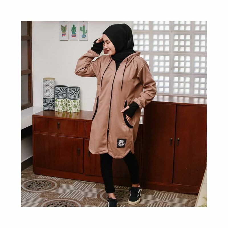 Jaket Jacket Hoodie Panjang Muslimah Wanita Cewek Jeket Hijaber Kekinian Abu Tua Pink Hijacket YK