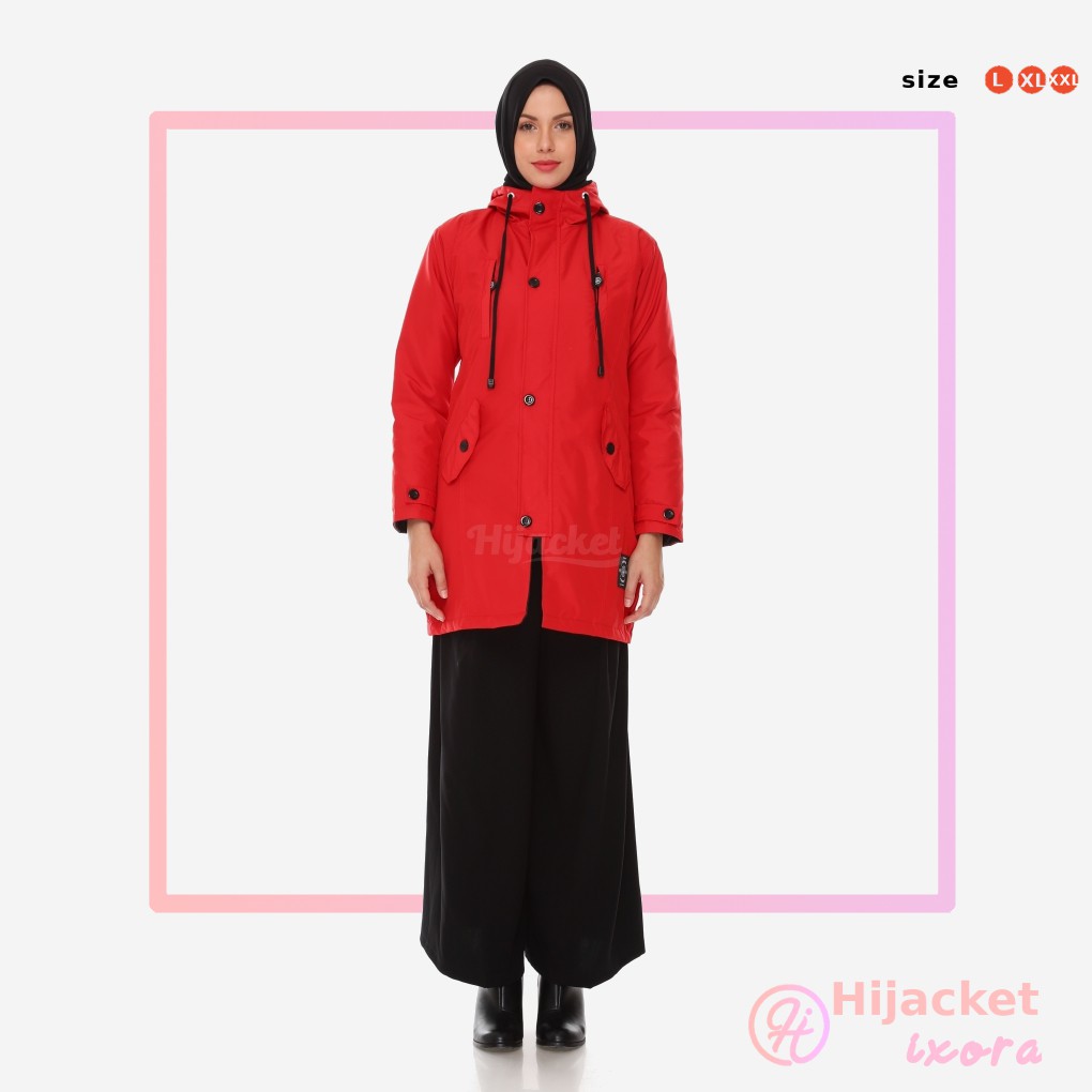 Hijacket Ixora Merah Parachute Wind & Water Prouf Original Guranteed Jaket Parka Wanita Muslimah